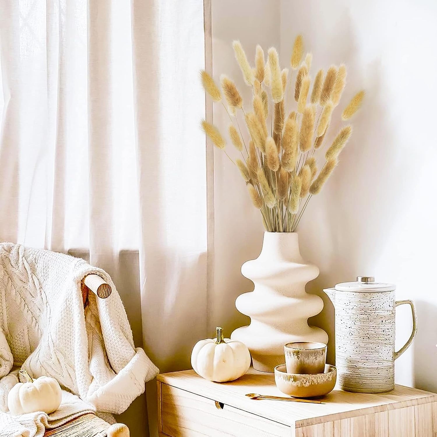 Versatile Styling: With their soft, neutral tones and fluffy appearance, bunny tail grass bundles seamlessly blend with various decor styles, from minimalist and modern to boho and vintage. Arrange them in vases, bouquets, or wreaths to create a captivating focal point.